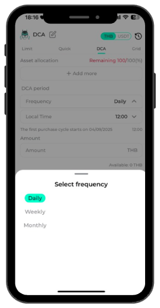 How many frequency options are available for DCA on Maxbit? Maxbit Support September 08, 2025 17:35 Updated Users can choose from 3 frequency options:DailyWeeklyMonthly